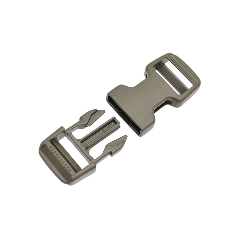 Фастекс 25 мм DUAL NTSR WJ. Прочность на разрыв 91 кг. Размер: длина 76,7 мм; ширина 33,5 мм; толщина 12,7 мм. Регулировка: с двух сторон. Материал: Acetal WJ. Преимущество: высокая прочность на разрыв. Возможный цвет: черный, олива, койот. Устойчив к действиям масел, растворителей и жиров. Диапазон рабочих температур: -40 0 С - +80 0 С. Температура плавления: 166 0 С. Страна производства: Южная Корея. Запатентованный дизайн Woojin Plastic Company.