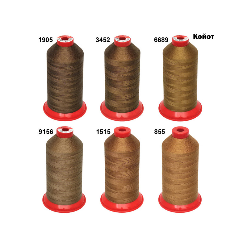 Нитка высокопрочная №30. Линейная плотность: 90 tex. Разрывная нагрузка: 5,1 сН. Намотка бобины: 2500 м. Сертификат Oeco-Tex Standart 100 Class 1. Материал: 100% полиэстер. Доступно на складе в цветах группы койот и группы хаки, а так же в черном цвете. Благодаря непрерывности волокон, имеет высокую прочность, стойкость к трению и UF лучей. Не дает усадку при ВТО. Назначение: используется для большинства видов тяжелых тканей в швейном, мебельном, галантерейном, обувном производстве. Страна производства: Турция.