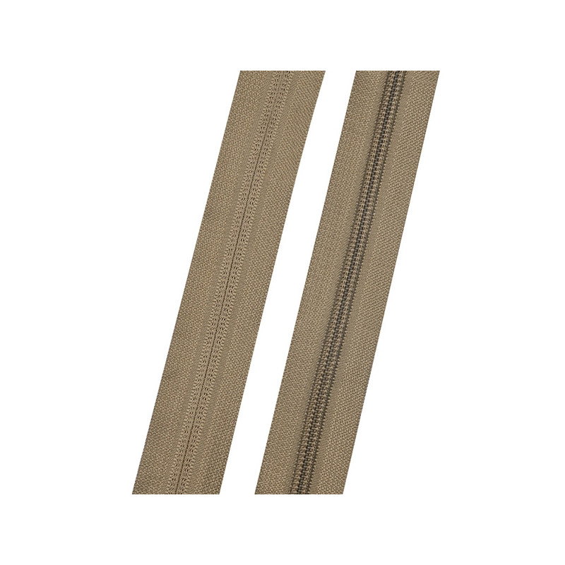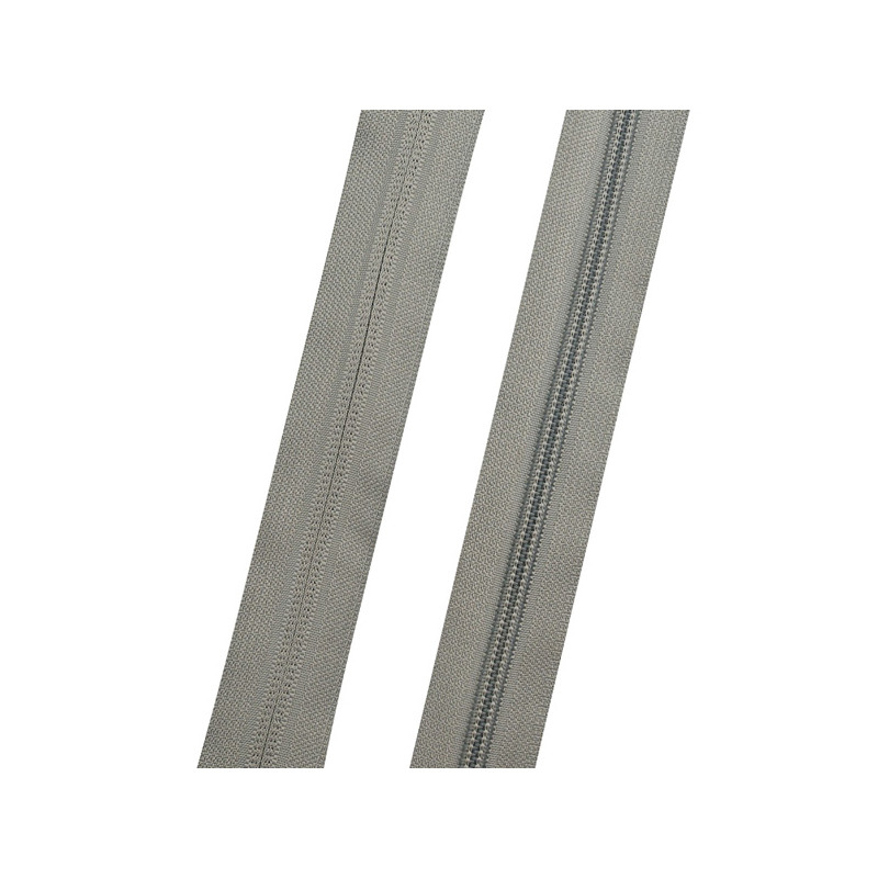 Молния тип 5 спиральная, рулонная. Ширина полотна в закрытом состоянии 31 мм. Состав: спираль - нейлон (РА), полотно - полиэстер (PE). Количество циклов открытий-закрытий: 10000. Доступные цвета: черный, серый, хаки, белый, тан. Упаковка: рулон 100 м. Производитель: TM MAX Zipper. Страна производства: Китай.
