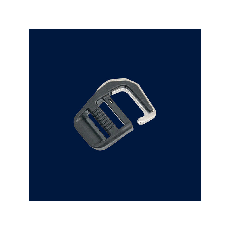 Крючок компрессионный для ленты 15 мм WJ. Размер: длина 33 мм; ширина 25 мм; толщина 12 мм. Прочность на разрыв: 32 кг. Модель пряжки: Metal Combo Tension Hook Left. Материал: Acetal WJ, анодованый алюминий. Преимущество: заменяет собой несколько элементов фурнитуры. Возможный цвет: черный. Устойчив к действиям масел, растворителей и жиров. Диапазон рабочих температур: -40 0 С - +80 0 С. Температура плавления: 166 0 С. Производитель: Woojin Plastic (WJ). Страна производства: Южная Корея.
