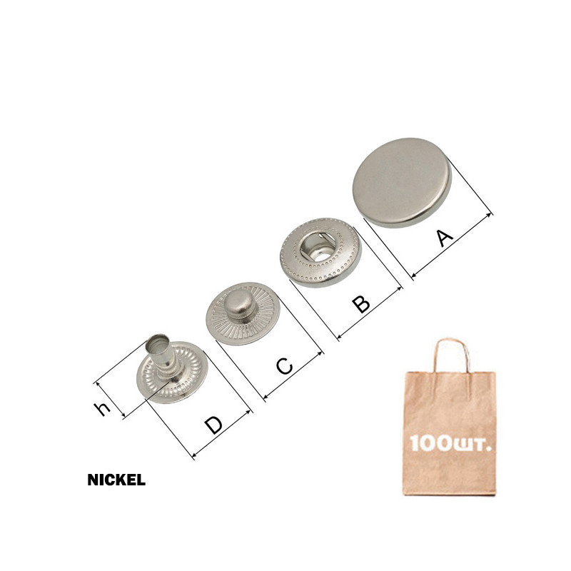 Кнопка Alfa-S SPRING SNAP BUTTON, спиральная, СОІN CAP 17 мм. Материал: латунь. Размер: A: d 17 мм; B: d 13,5 мм; C: d 12,5 мм; D: d 12 мм. Высота ножки: 8,8 мм. Преимущество: высокое качество, надежность, высокая прочность, не ржавеет. Доступные цвета: черный, Antic Brass, темный никель (Black Nickel), никель (Nickel). Страна производства: Турция.