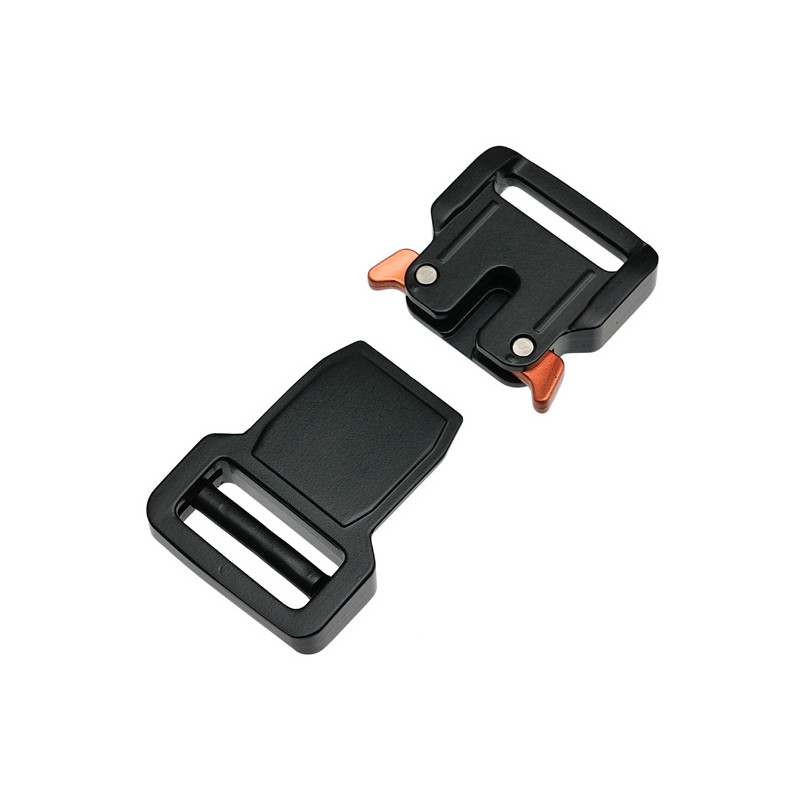 Фастекс алюмінієвий 25 мм. Модель: Stealth. Регулювання ременю з однієї сторони. Матеріал: алюміній (Aluminium). Перевага: легка вага та компактність, висока міцність на розрив. Можливі кольори: чорний, койот, антик. Міцність на розрив підвищена: 350 кг+. Стійкий корозії, розчинників, жирів та масел. Виробник: UHC. Сфера використання: туристичне спорядження, тактичне спорядження, ремені. Каїна виробництва: В'єтнам.