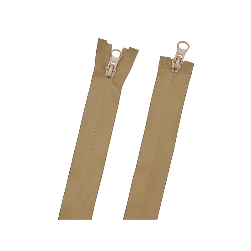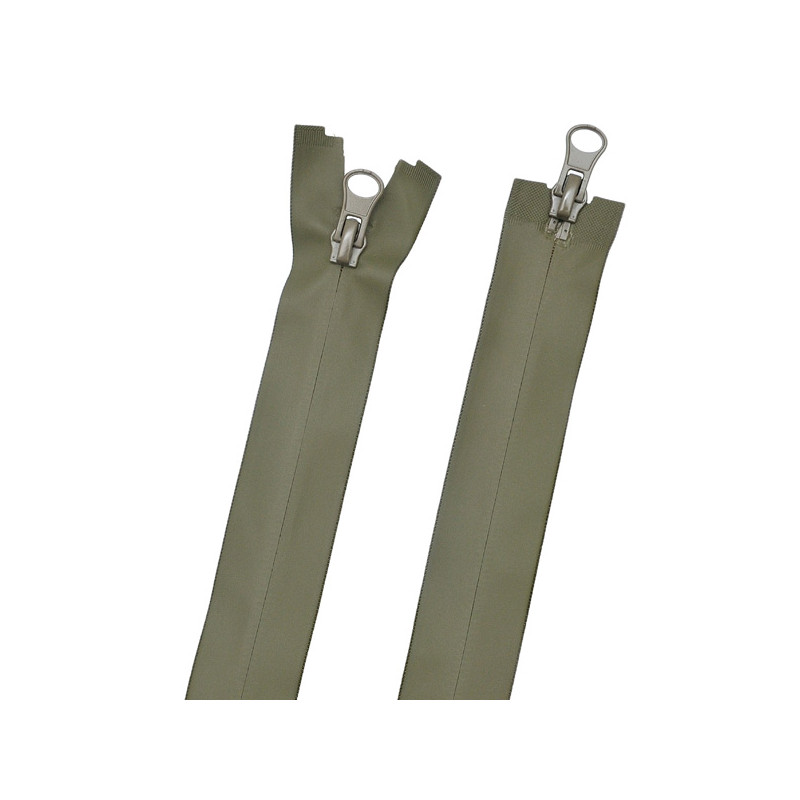 Блискавка тип 5, 90 см. Водовідштовхувальна поверхня NТWR - спеціальна матована зносостійка поверхня. Виворітна (реверсна або потаємна). Роз'ємна, 2 бігунка. Для мембранних тканин та для тканин з просоченням. Для верхнього одягу, сумок та рюкзаків із захистом від вітру та вологи. 3 000 гарантованих циклів відкриттів/закриттів. Склад: спіраль 6,2 мм - нейлон (PA), полотно плетене - поліестер (PE), матеріал захисного (прорезиненого) покриття - спеціальна плівка TPU. Можливі кольори: хакі, койот. Країна виробництва: Китай.