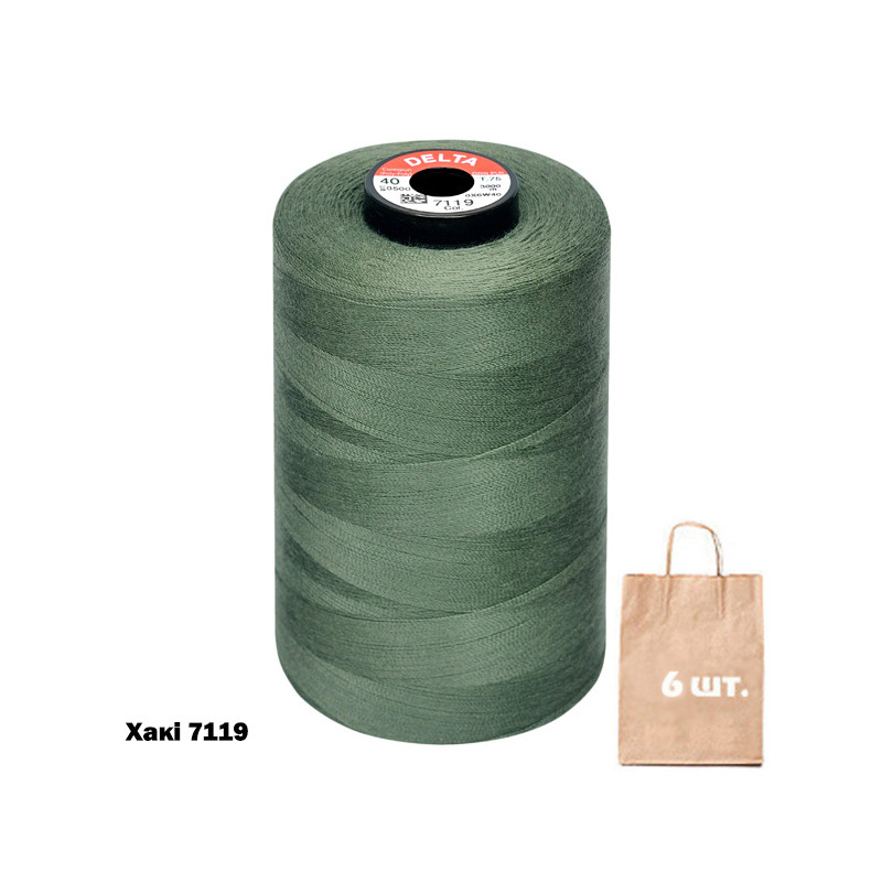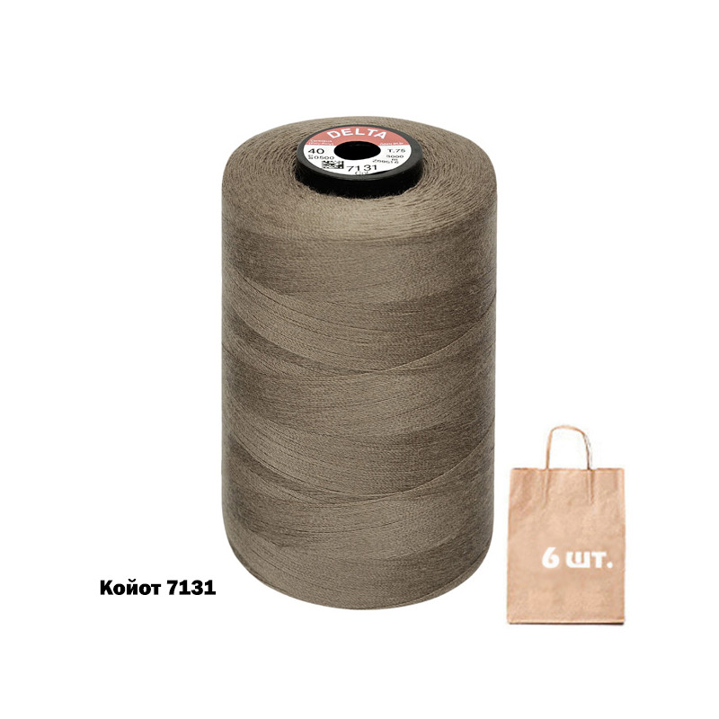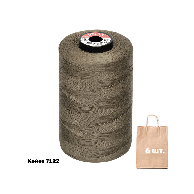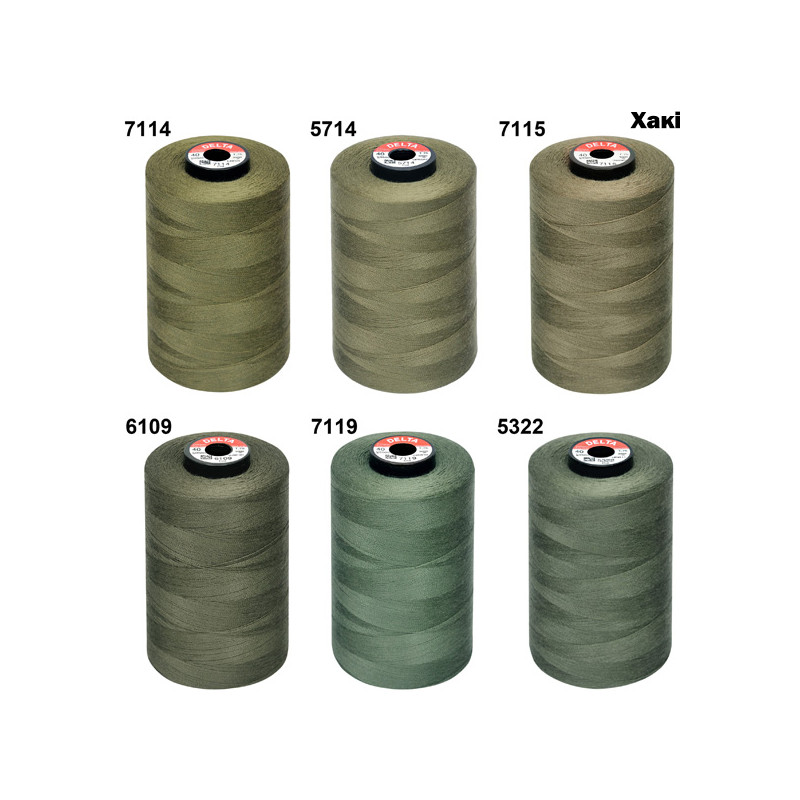 Нитка Delta №120 армована . Лінійна густина 26 tex. Розривне навантаження:12 сН. Намотка бобин: 5000 м. Сертифікат Oeco-Tex Standart 100 Class 1. Склад: 100% поліестер. Доступно на складі у кольорах групи койот, хакі, а також у сірому та чорному кольорах. Підвищена міцність завдяки безперервному поліефірному волокну всередині. Не дає усадку при ВТО. Стійкість фарбування. Призначення: використання для більшості видів тканин у швейному виробництві як основна чи допоміжна нитка. Країна виробництва: Туреччина.