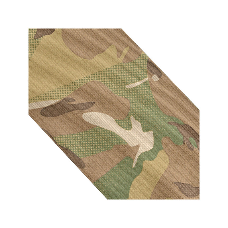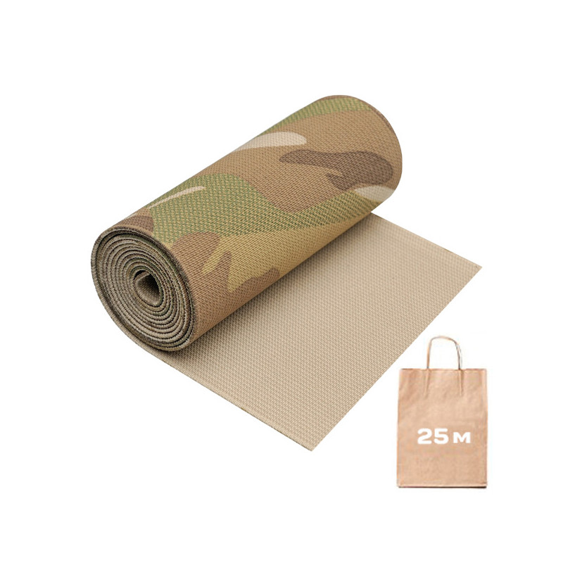 Рулон 25 метрів. Ширина полотна 100 мм. Високоміцна із просоченням IRR, для спорядження та амуніції. Матеріал: еластан та поліестер. Еластичні волокна високої якості будуть гарантувати довгострокове використання без деформації самої резинки. Плетення більш щільне, ніж у резинки HD. Можливий принт: Multi Camouflage. Країна виробництва: Китай.