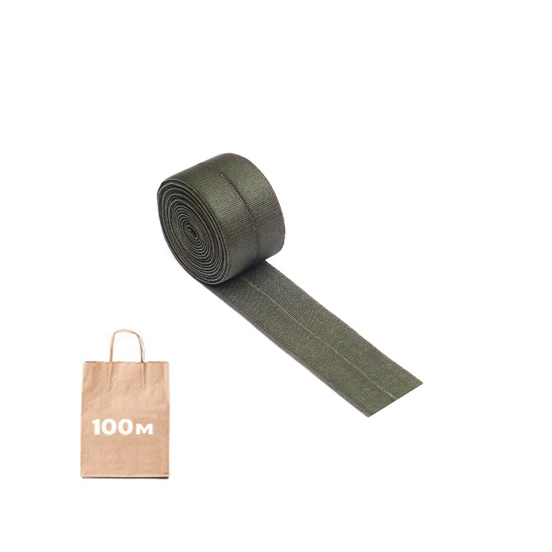 Рулон 100 метрів. Резинка-окантовка FOLDOVER, 20 мм. Матеріал: еластан та поліестер. Спеціально створена для обробки країв виробу, складається навпіл для зручності процесу. Витривала та надійна, стійка для зовнішніх чинників. Можливі кольори: чорний, койот, олива. Країна виробництва: Китай.