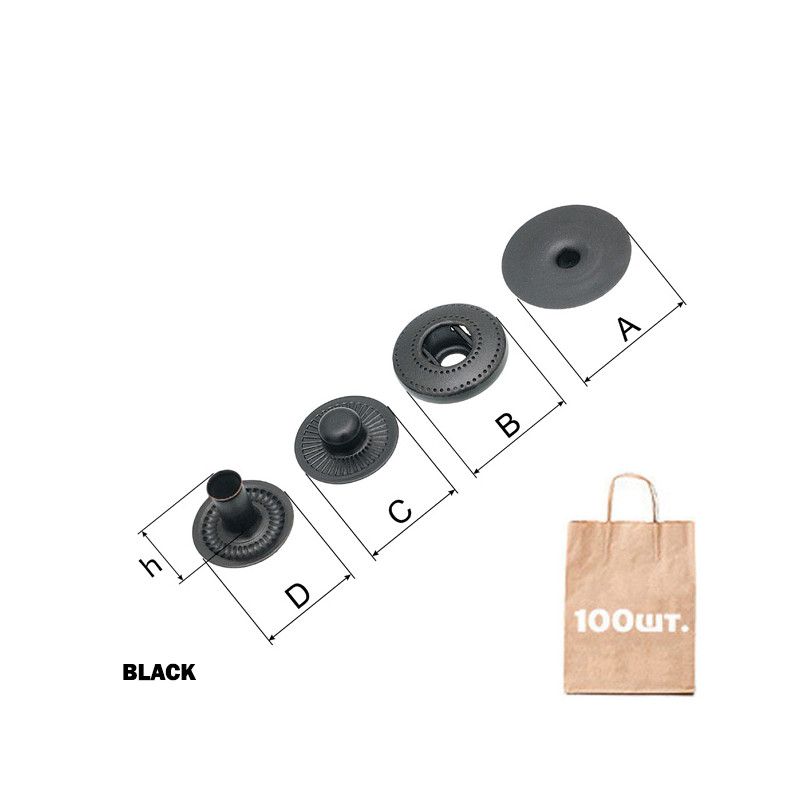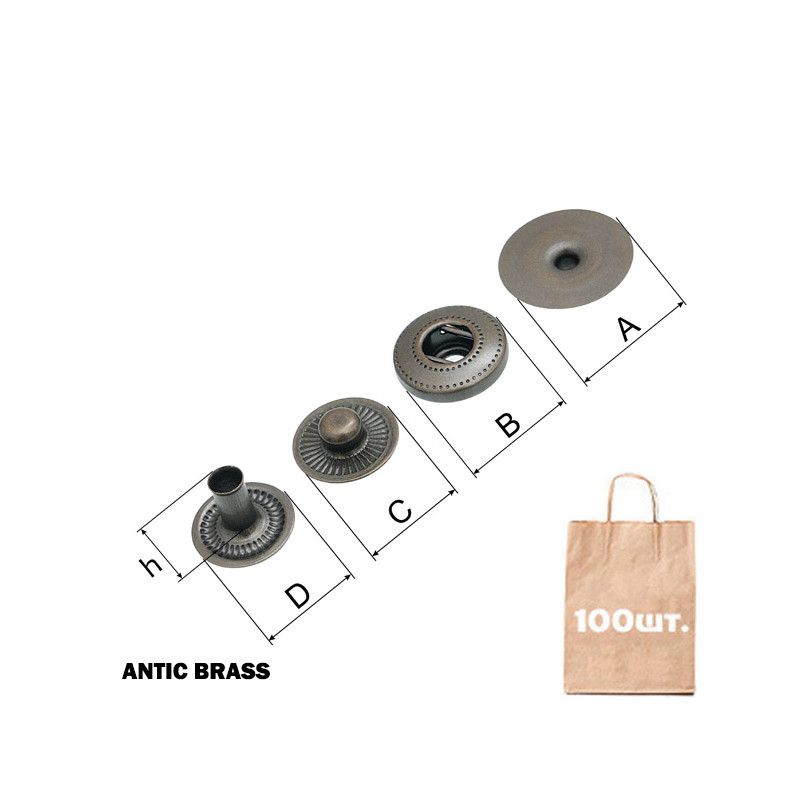 Кнопка потайна, спіральна HIDDEN CAP 16 мм. Матеріал: латунь. Розміри: A: d 16 мм. B: d 12 мм. C: d 10,7 мм. D: d 10,7 мм. Висота ніжки 6,6 мм. Перевага: потайна кнопка, висока якість, надійність, висока міцність, не іржавіє. Можливі кольори: чорний, Antic Brass. Країна виробництва: Туреччина.