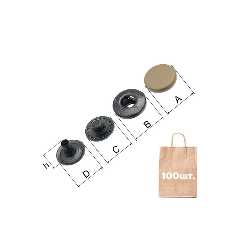Кнопка MINI SPRING, спіральна COIN CAP Spring 10 мм. Матеріал: латунь. Розмір: A: d 10 мм; B: d 10 мм; C: d 9 мм; D: d 10 мм. Висота ніжки: 5,25 мм. Перевага: висока якість, надійність, висока міцність, не іржавіє. Можливі кольори: чорний, олива, койот. Країна виробництва: Туреччина.