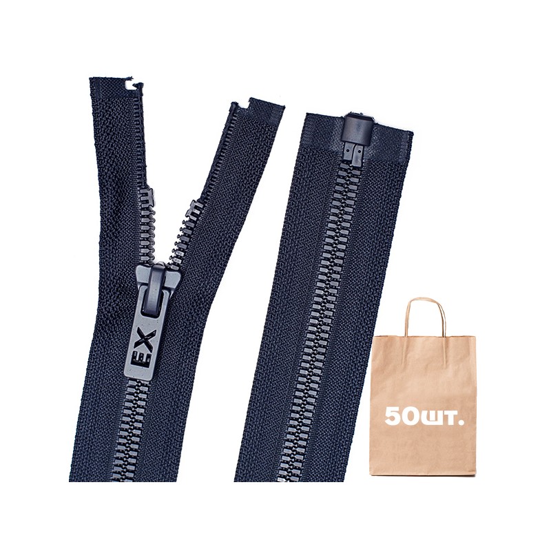 Упаковка 50 шт. Блискавка тип 8, тракторна . Дрібні зубці особливої форми для безпечного закриття, довжина 90 см. Роз'ємна . Склад: зубці - віслон (vislon), полотно - полиэстер (PE). Ширина полотна у закритому стані 37 мм. Кількість бігунків: 1. Спосіб фарбування бігунка: electrophoresis metal. Кількість циклів відкриттів-закриттів: 10000. Доступні кольори: чорний, золото, темно-синій, шоколад. Виробник: TM MAX Zipper. Країна виробництва: Китай.