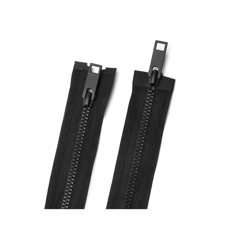 Блискавка тип 5, тракторна, довжина 85 см. Роз'ємна. Форма зубців: "Ялинка". Форма пулера: 169. Склад: зубці - віслон (vislon), полотно - полиэстер (PE). Кількість бігунків: 2. Спосіб фарбування бігунка: electrophoresis metal. 10 000 циклів відкриттів/закриттів. Доступний колір: чорний. Виробник: TM MAX Zipper. Країна виробництва: Китай.