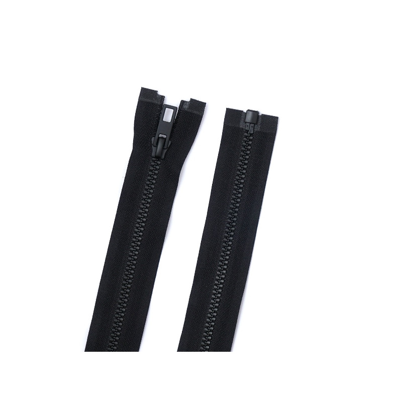 Блискавка тип 5, тракторна, довжина 75 см, роз'ємна. Форма зубців: "Ялинка". Форма пулера: RH. Склад: зубці - віслон (vislon), полотно - полиэстер (PE). Кількість бігунків: 1. Спосіб фарбування бігунка: electrophoresis metal. 10 000 циклів відкриттів-закриттів. Доступний колір: чорний. Виробник: TM MAX Zipper. Країна виробництва: Китай.